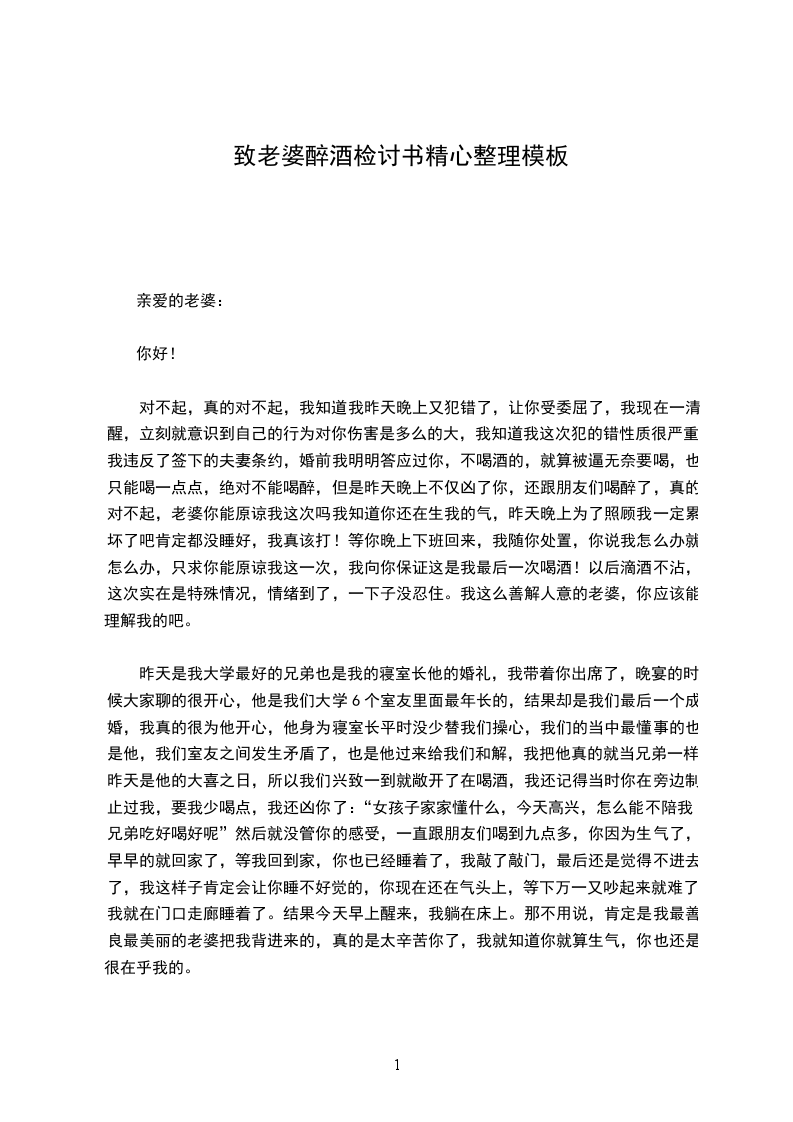 我喝醉了,又一次喝多了,真的伤了我宝贝的心,我真的知道自己错了,我认打认骂认罚,我给我亲爱的老婆道歉,请我亲爱的老婆原谅我,喝酒是场面上的事情,有的时候不喝酒不行,但是我一定会控制好自己,控制好酒量,量力而行,保重身体,请亲爱的老婆看我的行动吧,就请老婆给我个改正的机会好吗