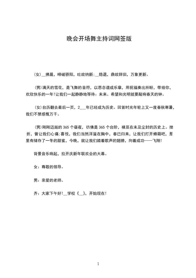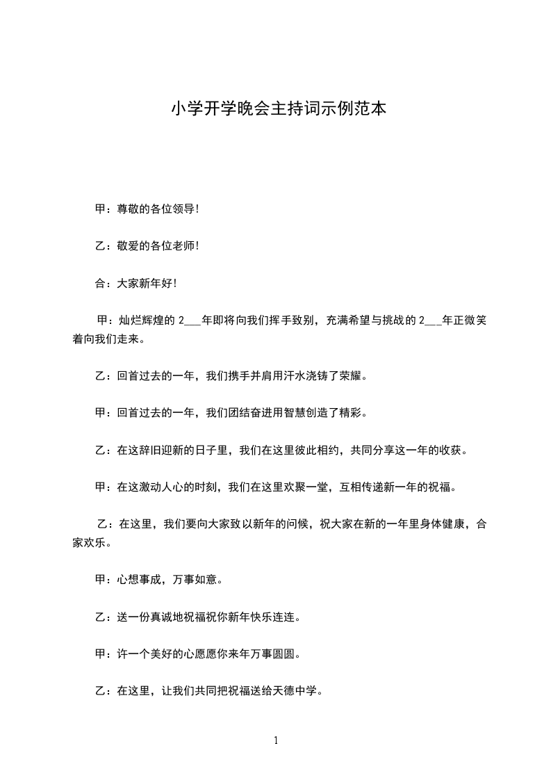 甲:灿烂辉煌的2___年即将向我们挥手致别,充满希望与挑战的2___年正微笑着向我们走来。