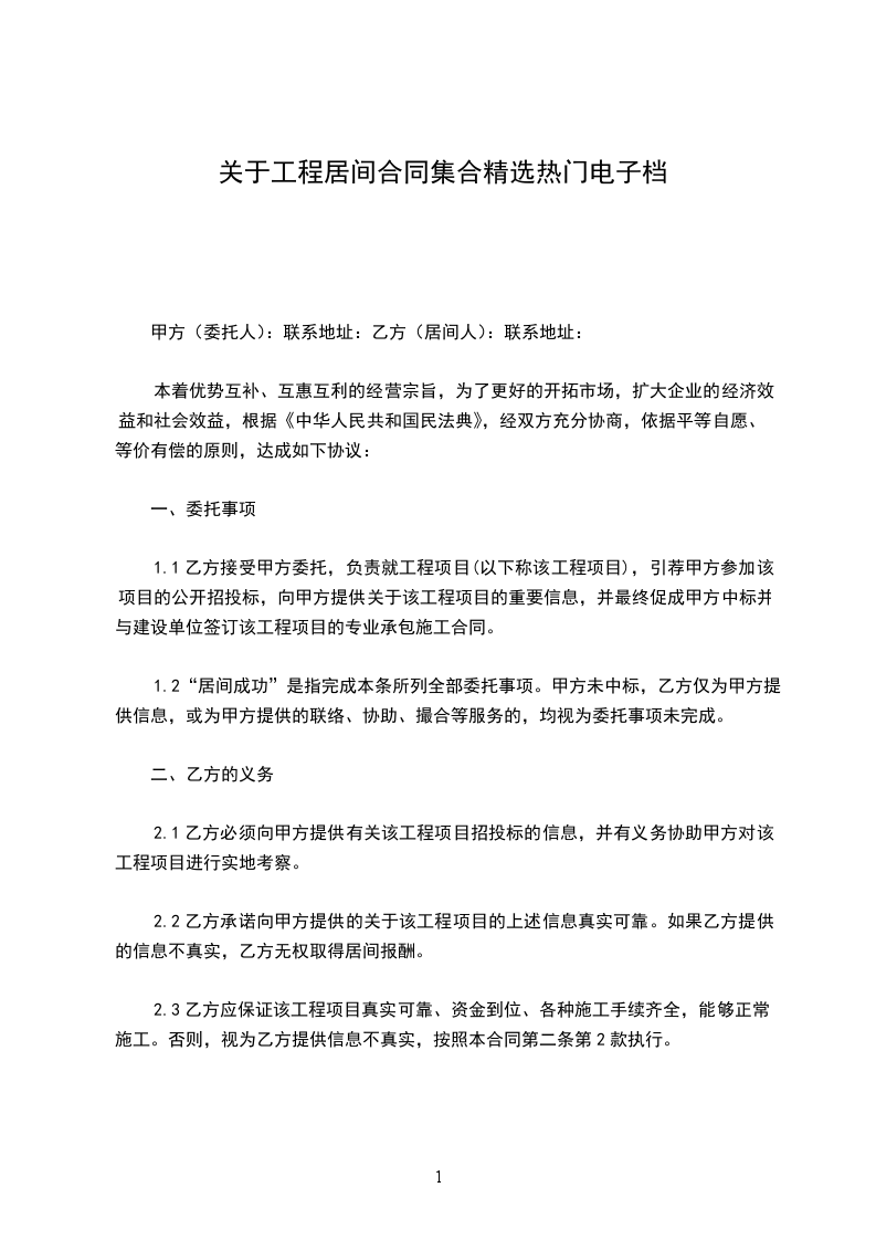 甲、乙双方本着友好合作互惠互利的原则,就乙方向甲方推荐的卖方(以下简称丙方)采购氧化铁红居间合同,并甲方委托乙方协助甲方完成商务谈判等事宜达成如下协议: