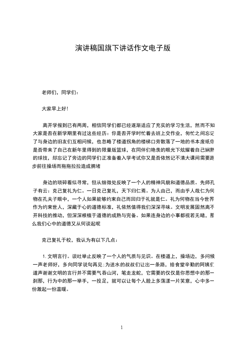 1.文明言行。谈吐举止反映了一个人的气质与见识。在楼道上,操场边,多问候一声老师好,多向同学说句再见;为送水的叔叔们让出一条路,给食堂辛勤的阿姨们道声谢谢文明的言行并不需要气吞山河,笔走龙蛇,它需要的仅仅是你思想中的那一刹那,行为中的那一举手,一投足,就可以让每个人脸上多荡漾一片笑意,心中多一份激起一份温暖。