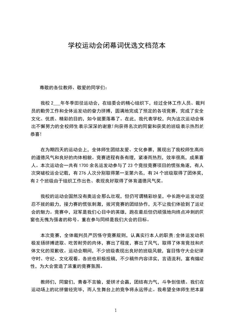 天高云淡,让我们拥有爽朗的心情、开阔的胸怀;风和日丽,让我们体会到温暖的滋味、感恩的情怀。在这里,我谨代表学校表达深深的谢意:感谢亲爱的同学们,是你们用拼搏进取奏出了欢呼和呐喊的乐章;感谢尊敬的老师们,是你们认真的工作,才得以使本届体育节如此圆满和成功;同学们,紧张、激烈的运动将要暂时离我们而去,而我们人生的拼搏才刚刚展示出一个开头,在此,真诚地祝愿大家永远健康平安快乐,愿欢乐不仅洋溢在你们脸上,更荡漾在你们心中,愿欢乐不仅常伴你们左右,更陪伴你们一生!