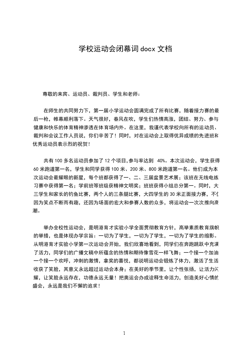 最后,我宣布:__中心学校体育节胜利闭幕。