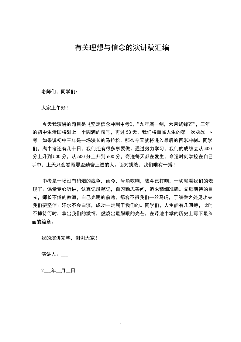 今天我演讲的题目是《坚定信念冲刺中考》,“九年磨一剑,六月试锋芒”,三年的初中生活即将划上一个圆满的句号,再过58天,我们将面临人生的第一次决战—中考。如果说初中三年是一场漫长的马拉松,那么今天就将进入最后的百米冲刺。同学们,离中考还有几十日,我们还有很多事要做。通过努力学习,我们的成绩会从400分上升到500分,从500分上升到600分,奇迹每天都在发生,命运时刻掌控在自己手中,上天只会眷顾那些勤奋上进的人。面对挑战,我们唯有一搏!
