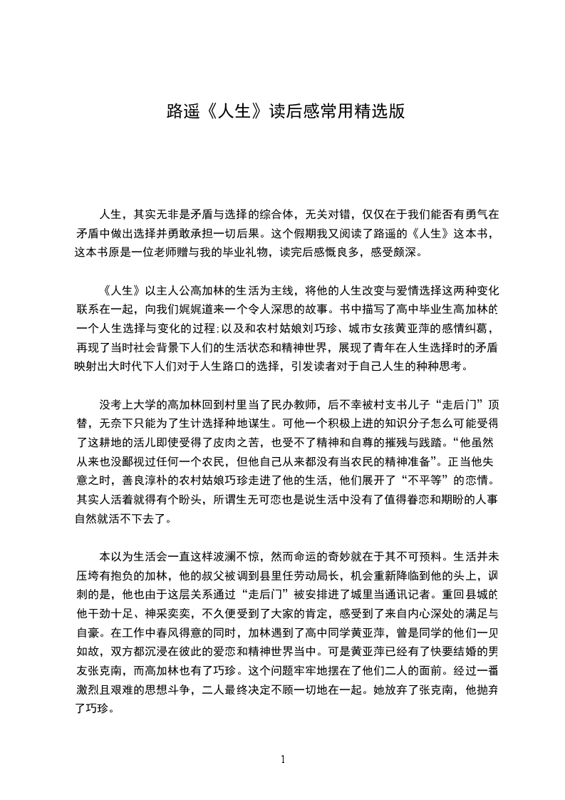 高加林怀着一颗勃勃雄心,进入了城市,在城市生活的舞台上,威武雄壮地表演了一番,最后又被迫回到自己最不愿呆的农村。但是这种轮回并不是原地踏步,而是人物在经过了生活的历练与艰辛之后的一种重新出发。在理想和现实的矛盾中,高加林从发疯似的上山劳动磨破了双手,读后感.到夜半时分进城掏粪不卑不亢,再到抗击洪水的勇猛精进,不辞劳苦,无不透露出平凡者对生活的坚守和对理想的追求。奋斗的每一天会很难,可一年一年却越来越容易,不奋斗的每一天都很容易,可一天一天却越来越难。