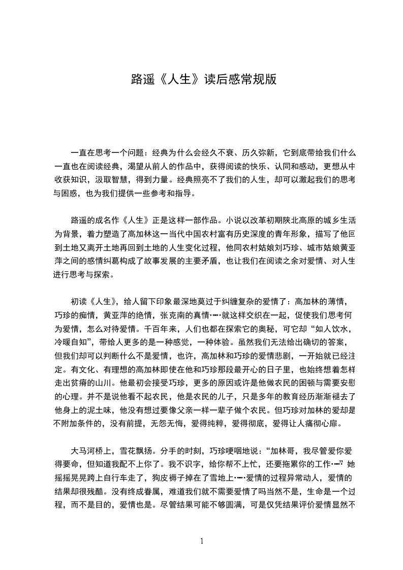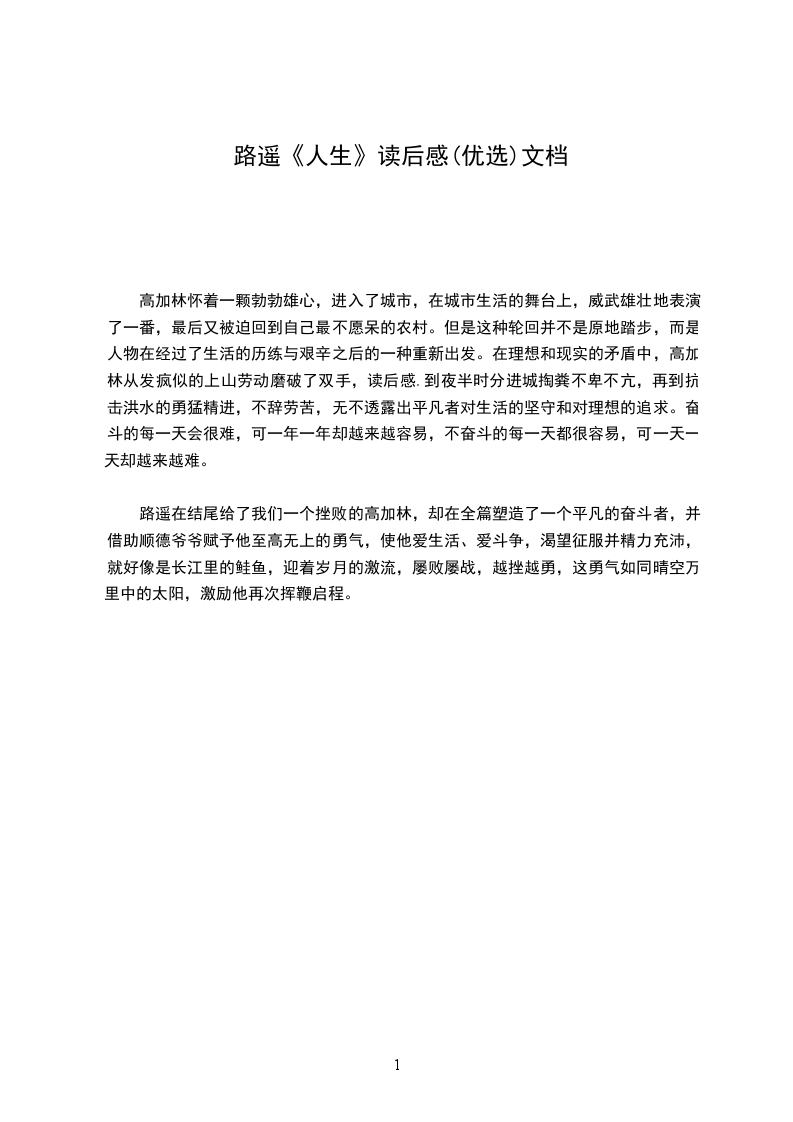 路遥在结尾给了我们一个挫败的高加林,却在全篇塑造了一个平凡的奋斗者,并借助顺德爷爷赋予他至高无上的勇气,使他爱生活、爱斗争,渴望征服并精力充沛,就好像是长江里的鲑鱼,迎着岁月的激流,屡败屡战,越挫越勇,这勇气如同晴空万里中的太阳,激励他再次挥鞭启程。