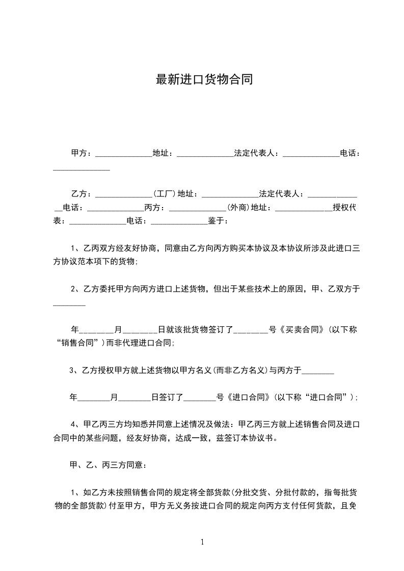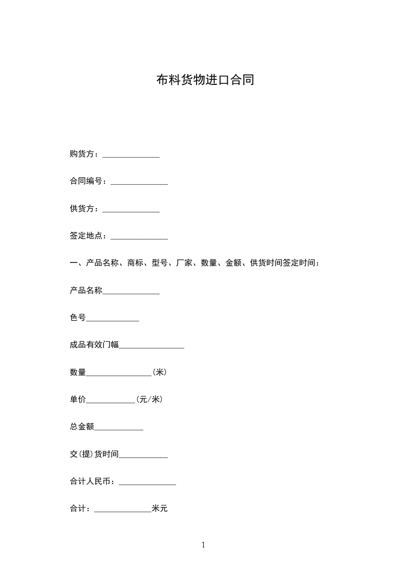 1.货物名称、规格和质量:__________________________________________