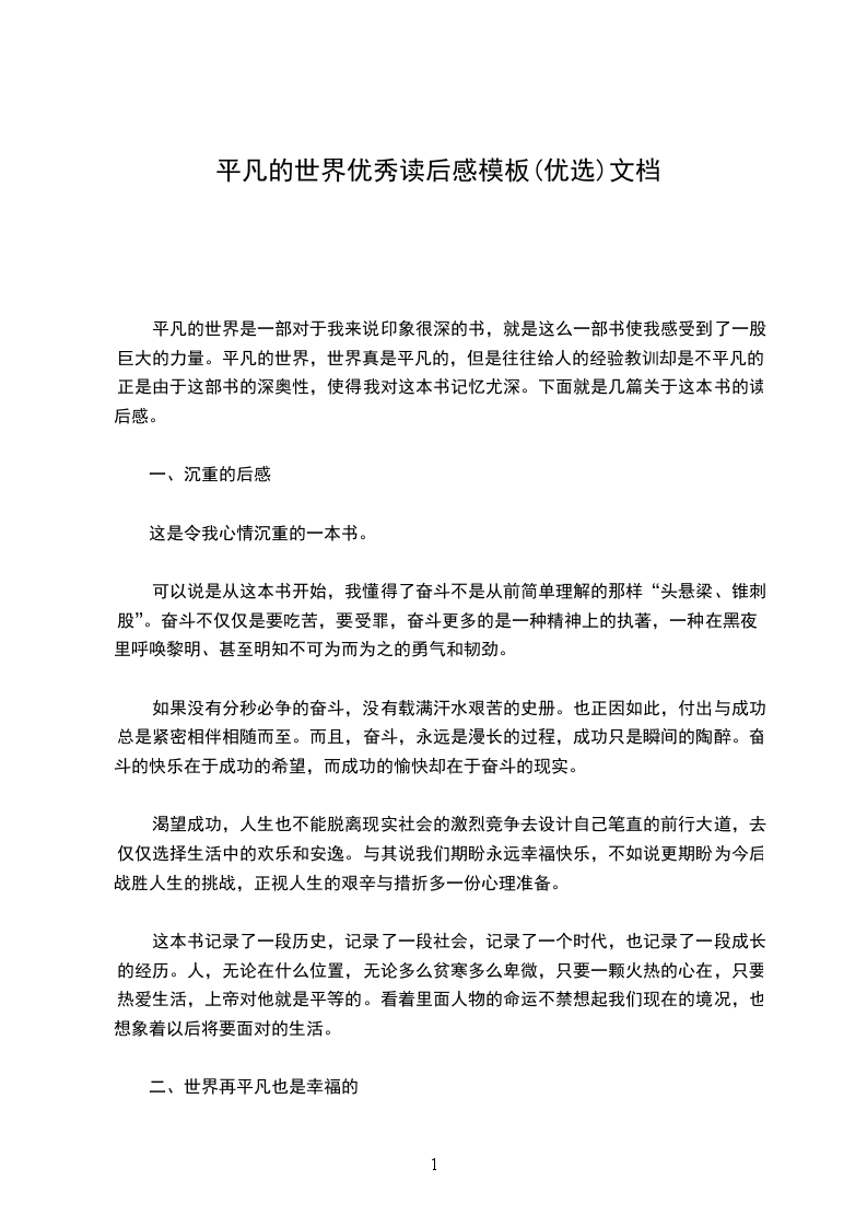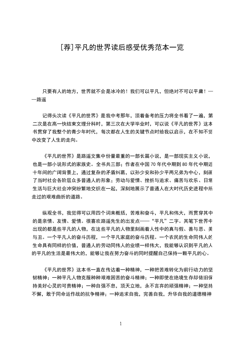 平凡的世界是一部对于我来说印象很深的书,就是这么一部书使我感受到了一股巨大的力量。平凡的世界,世界真是平凡的,但是往往给人的经验教训却是不平凡的。正是由于这部书的深奥性,使得我对这本书记忆尤深。下面就是几篇关于这本书的读后感。
