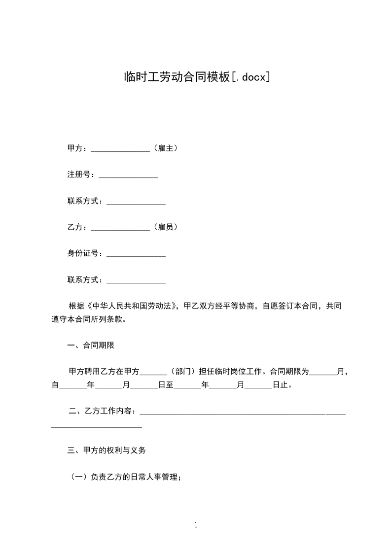 根据《中华人民共和国劳动法》及相关规定,甲乙双方经平等协商,自愿签订本合同,并遵守本合同所列条款。