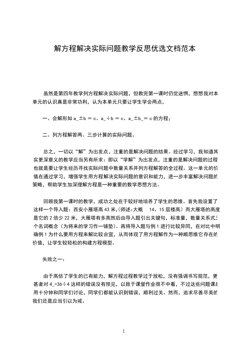 没给出点时间让学生探寻其他解法。其实我私自认为将这一过程放在第一课时,有点难为我的学生。我应当先给他们建一个完整的方程模型,然后再是模型之上的升华。