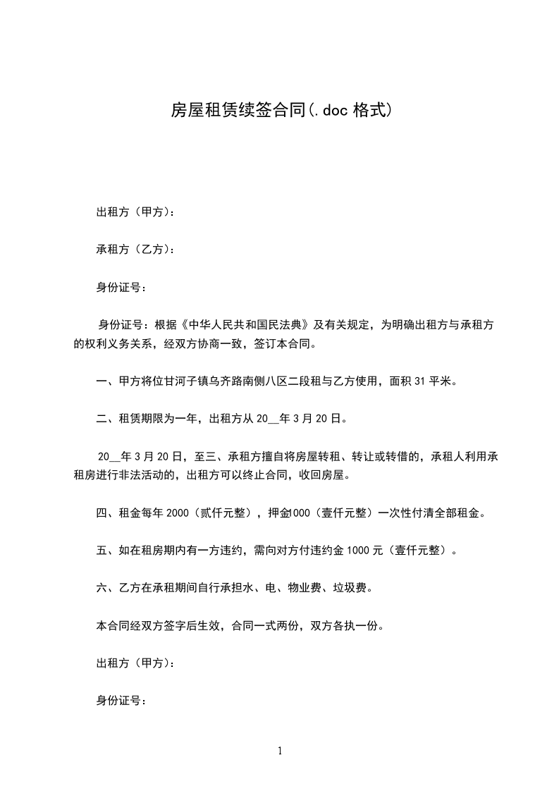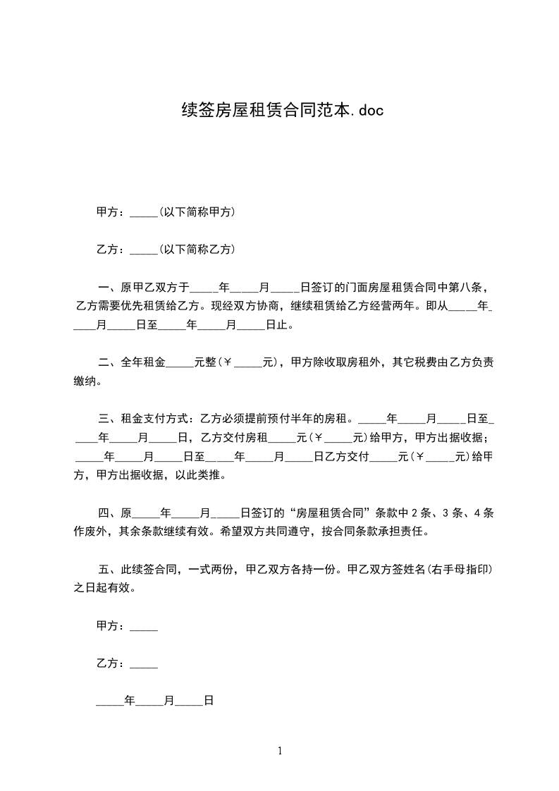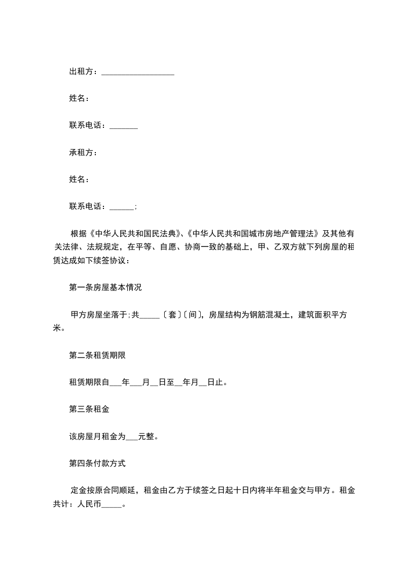 五、租房押金:本次合同不再另外支付押金,按上次的协议已支付__元整(__RMB),租房终止后,凭甲方所开具的押金收据,将上次的__元整(__RMB)退还乙方,不计利息。