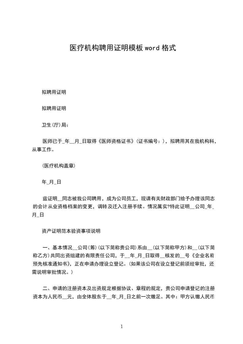医师已于_年__月_日取得《医师资格证书》(证书编号:),拟聘用其在我机构科,从事工作。