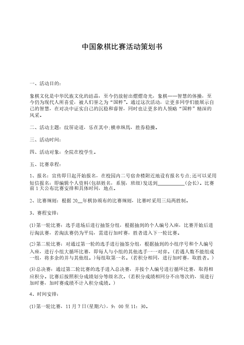 5.如比赛有异议时,参赛选手可向象棋负责人提出