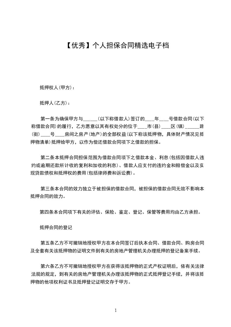 第一条为确保甲方与______(以下称借款人)签订的____年____号借款合同(以下称借款合同)的履行,乙方愿意以其有权处分的位于____市(县)____区(镇)______路(街)____号____房间之房产(地产)的全部权益(以下称该抵押物,具体财产情况见抵押物清单)抵押给甲方,以作为偿还借款合同项下之借款的担保。