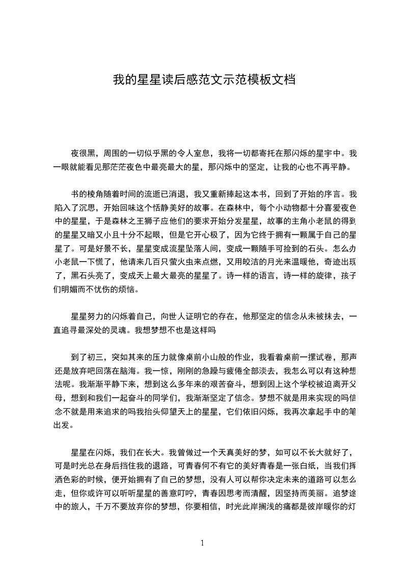书的棱角随着时间的流逝已消退,我又重新捧起这本书,回到了开始的序言。我陷入了沉思,开始回味这个恬静美好的故事。在森林中,每个小动物都十分喜爱夜色中的星星,于是森林之王狮子应他们的要求开始分发星星,故事的主角小老鼠的得到的星星又暗又小且十分不起眼,但是它开心极了,因为它终于拥有一颗属于自己的星星了。可是好景不长,星星变成流星坠落人间,变成一颗随手可捡到的石头。怎么办小老鼠一下慌了,他请来几百只萤火虫来点燃,又用皎洁的月光来温暖他,奇迹出现了,黑石头亮了,变成天上最大最亮的星星了。诗一样的语言,诗一样的旋律,孩子们明媚而不忧伤的烦恼。
