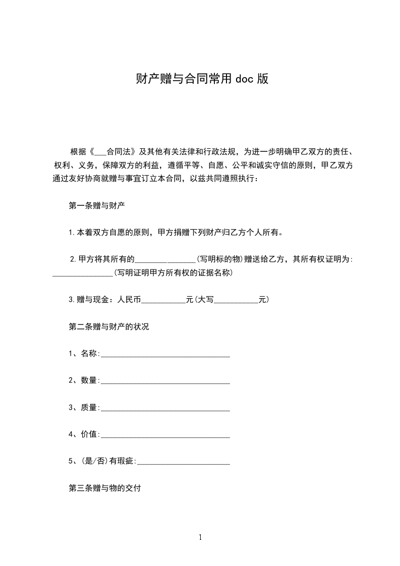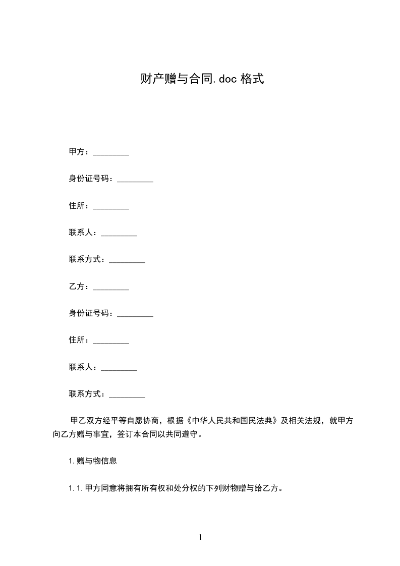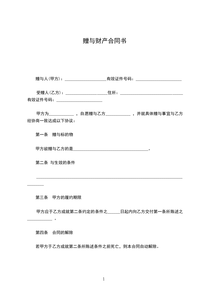 2.甲方将其所有的_______________(写明标的物)赠送给乙方,其所有权证明为:_______________(写明证明甲方所有权的证据名称)