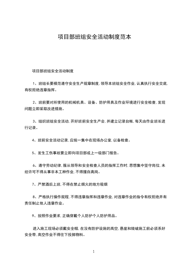 10、注意文明卫生,保持宿舍整洁卫生,不随地大便,工作中做到工完料清。每周进行检查卫生,并对卫生情况进行20-200元的罚款。
