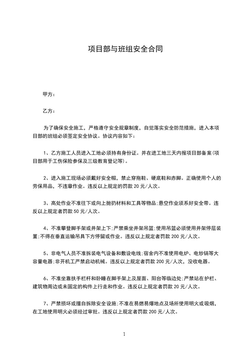 为了确保安全施工,严格遵守安全规章制度,自觉落实安全防范措施,进入本项目部的班组必须签定安全协议。协议内容如下:
