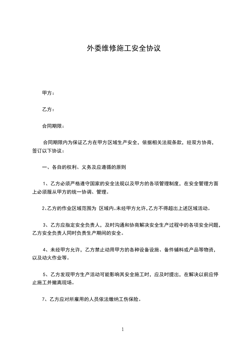 合同期限内为保证乙方在甲方区域生产安全,依据相关法规条款,经双方协商,签订以下协议: