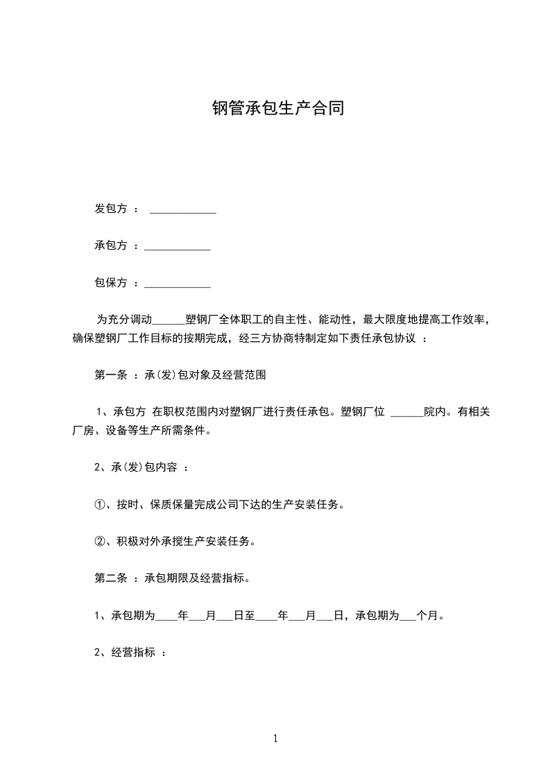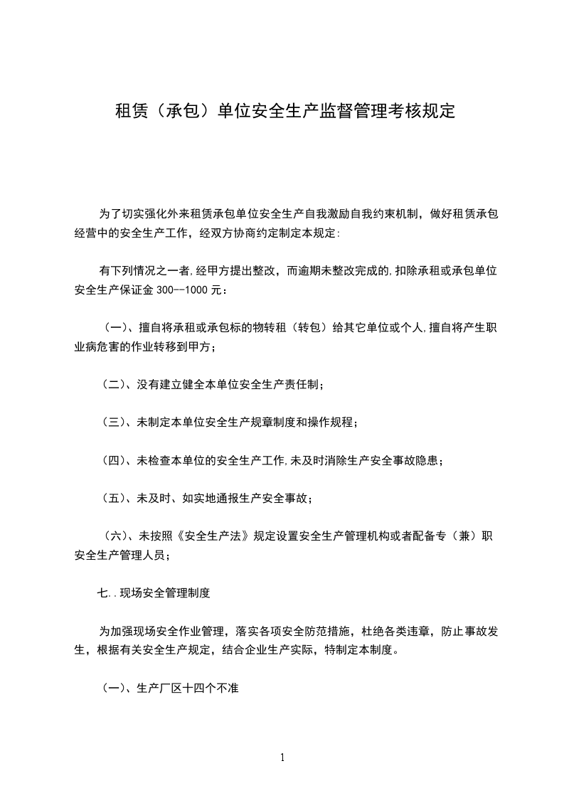 (一)为有效保证本协议的实施,经双方平等协商,承租或承包单位应向企业每年缴纳安全生产风险保证金 元。