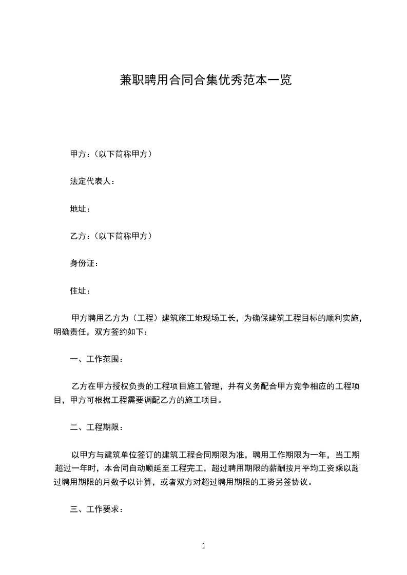 甲方聘用乙方为(工程)建筑施工地现场工长,为确保建筑工程目标的顺利实施,明确责任,双方签约如下: