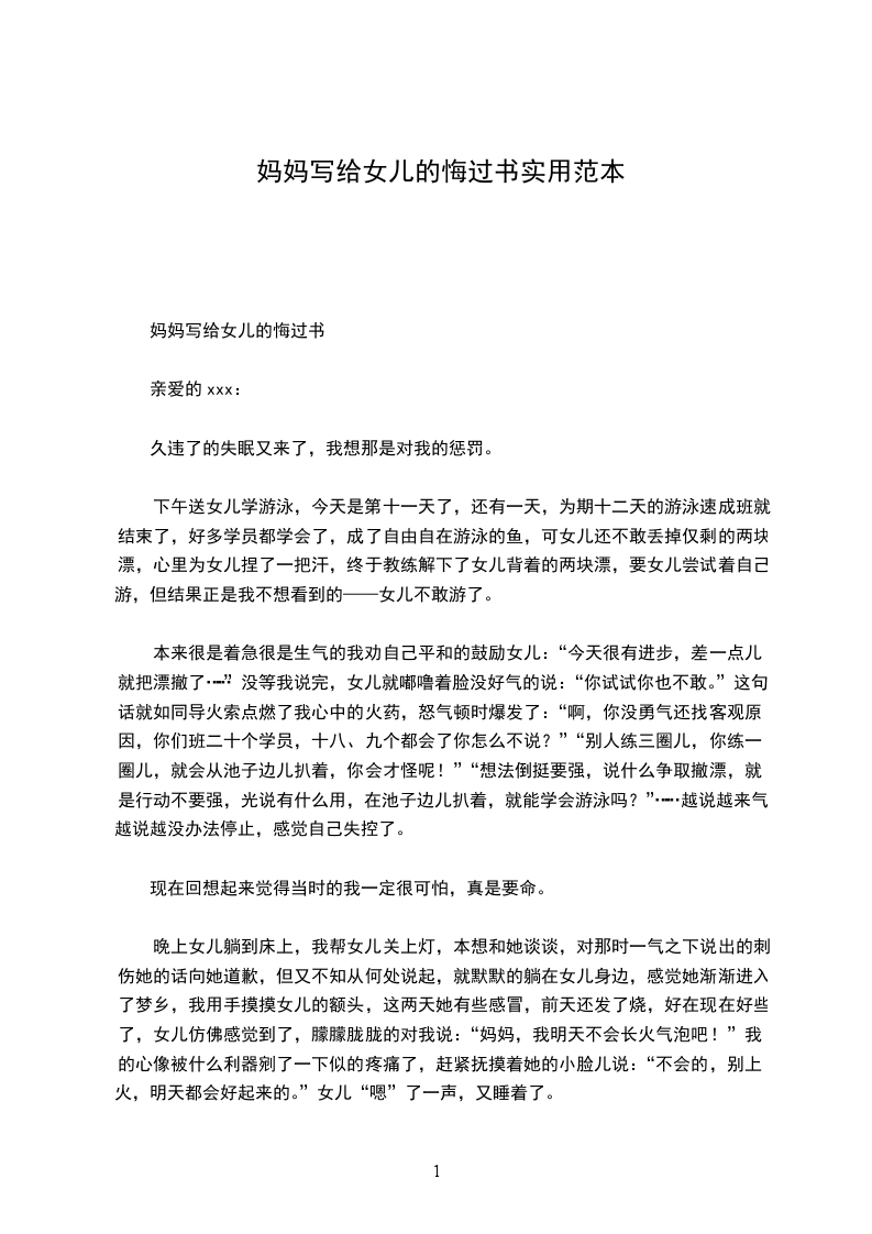 女儿,妈妈很想下午的事儿重新来过,如果真的能那样,妈妈会首先拥抱你,对你说:“宝贝儿是不是害怕了,没关系,有妈妈在,你只要再勇敢些就成功了。”无论你怎样回答,即便说着一些更加客观的理由,妈妈也不会暴跳如雷,妈妈会对你说:“真是的,学游泳怎么就这么难呢?不过别人能做到我们就能做到,妈妈对你有信心!”这样多好,是吧?但是说出的话是收不回的,无论妈妈多么难过,发生的事也不可能有别的版本,妈妈是最拙劣的演员已成事实。
