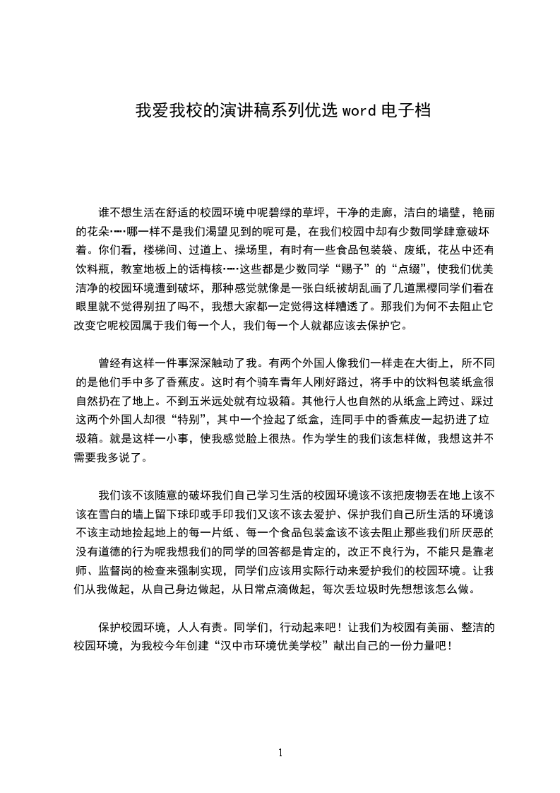 保护校园环境,人人有责。同学们,行动起来吧!让我们为校园有美丽、整洁的校园环境,为我校今年创建“汉中市环境优美学校”献出自己的一份力量吧!