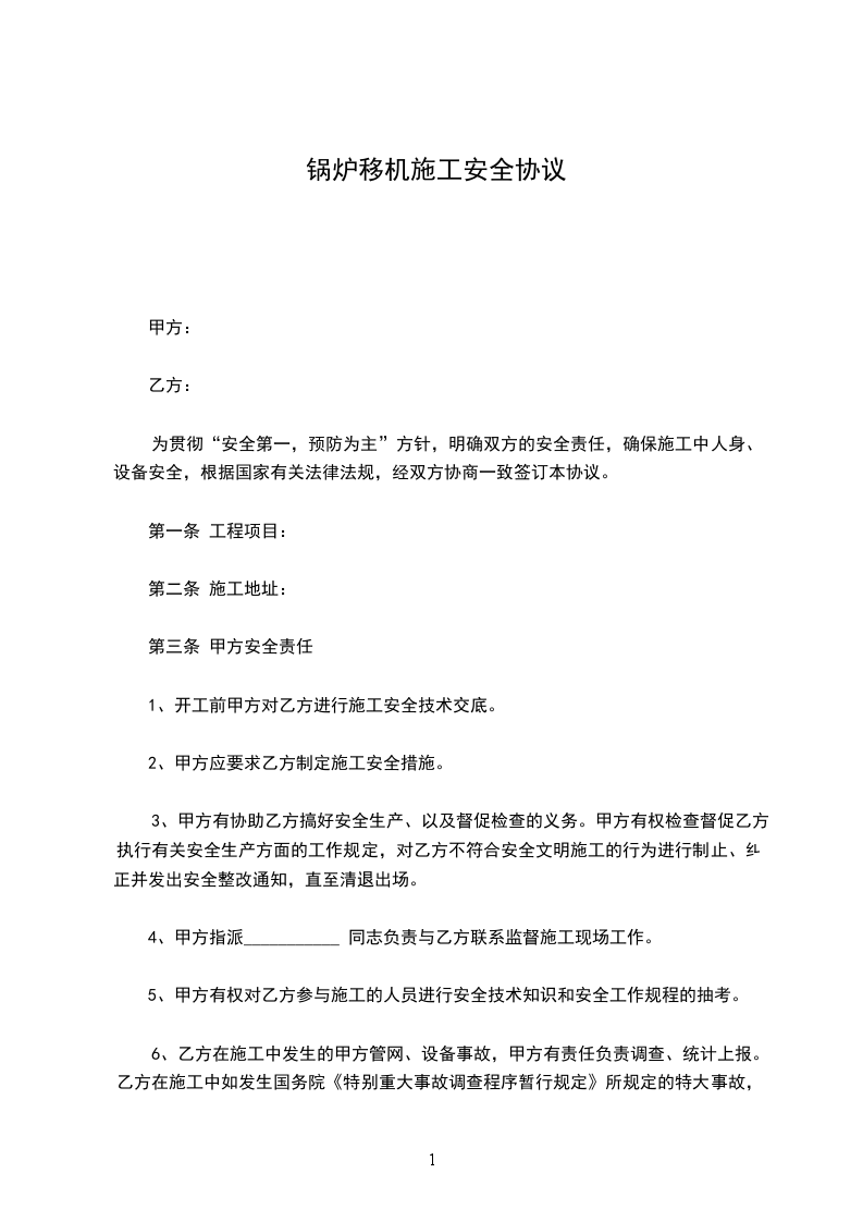 为贯彻“安全第一,预防为主”方针,明确双方的安全责任,确保施工中人身、设备安全,根据国家有关法律法规,经双方协商一致签订本协议。