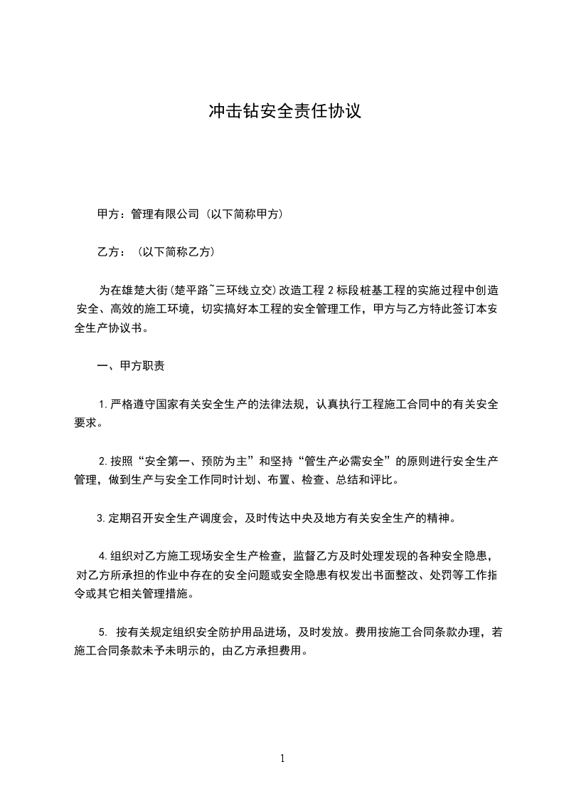 为在雄楚大街(楚平路~三环线立交)改造工程2标段桩基工程的实施过程中创造安全、高效的施工环境,切实搞好本工程的安全管理工作,甲方与乙方特此签订本安全生产协议书。