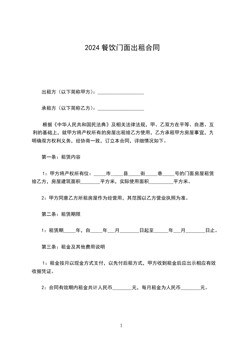 甲方将位于_______路____号___间门面(m2)承租给乙方经营,为规范甲乙双方的行为,经充分协商,达成如下门面出租协议: