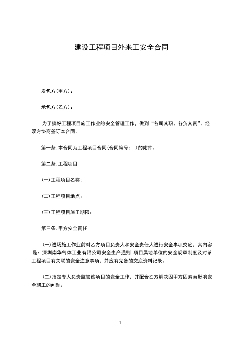为了搞好工程项目施工作业的安全管理工作,做到“各司其职、各负其责”。经双方协商签订本合同。