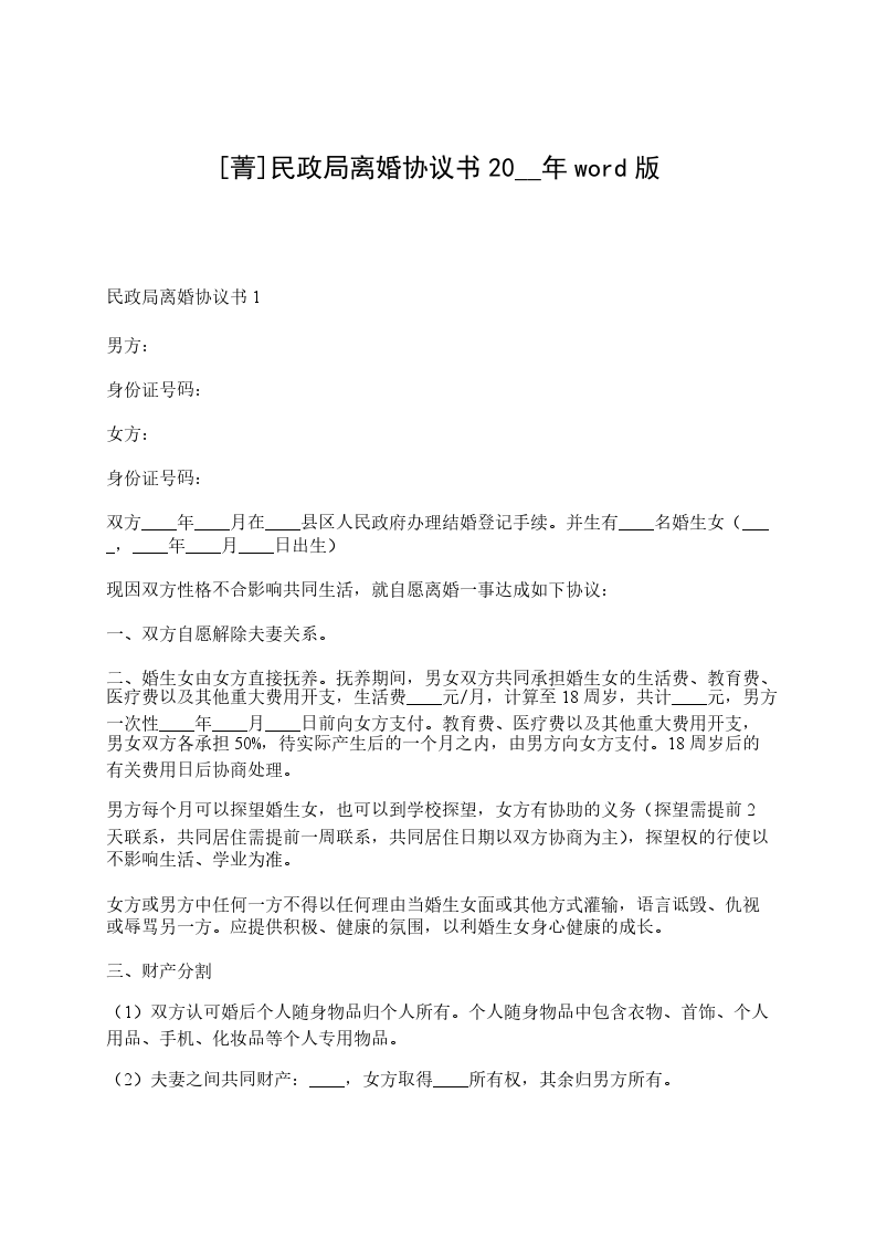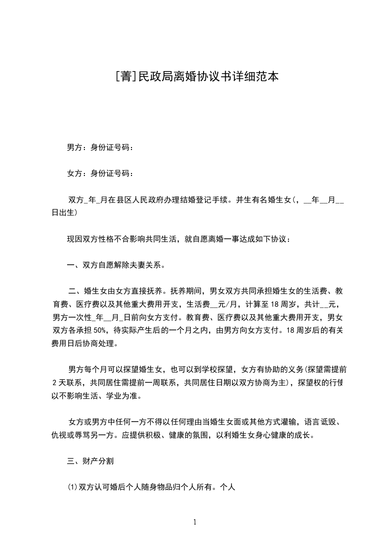 乙方(女方)姓名:_______________