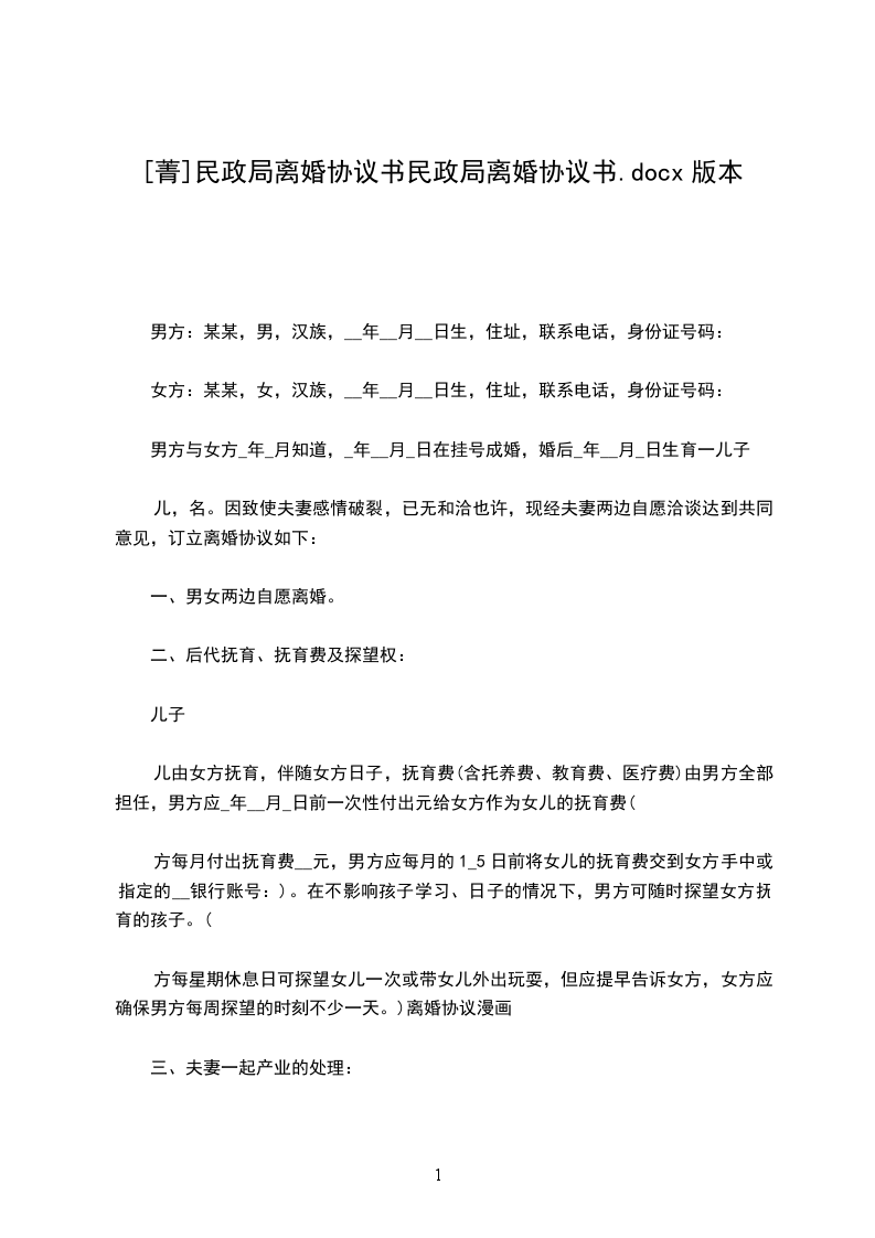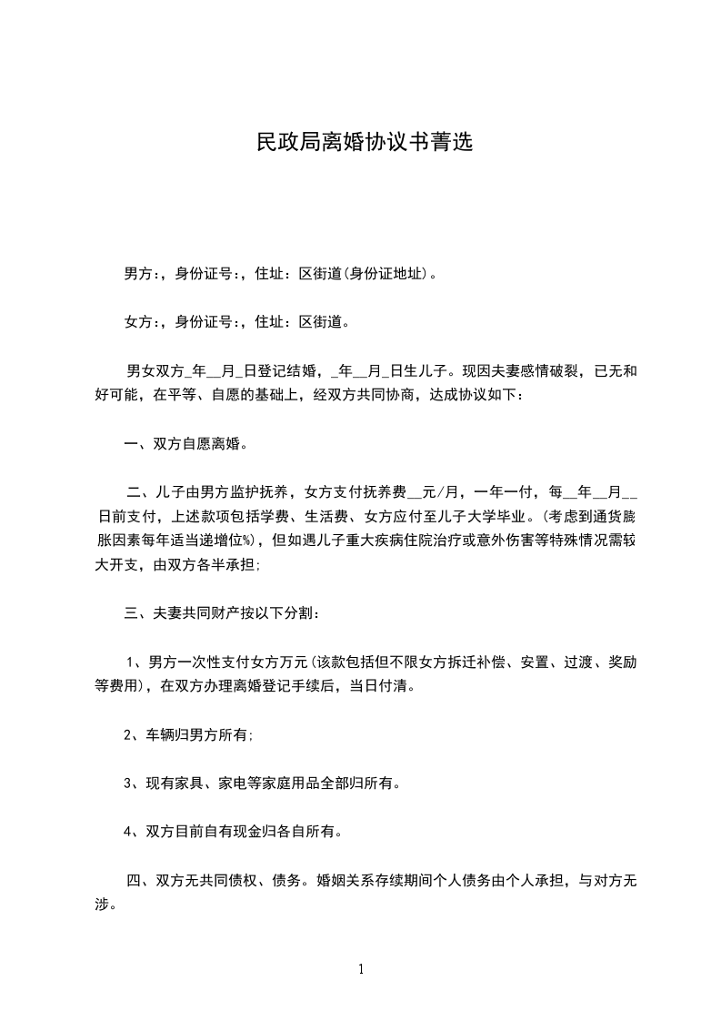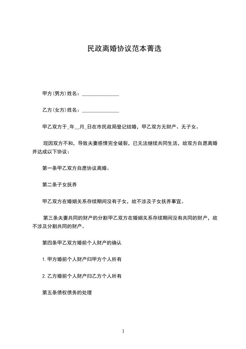 第一条甲乙双方自愿协议离婚。