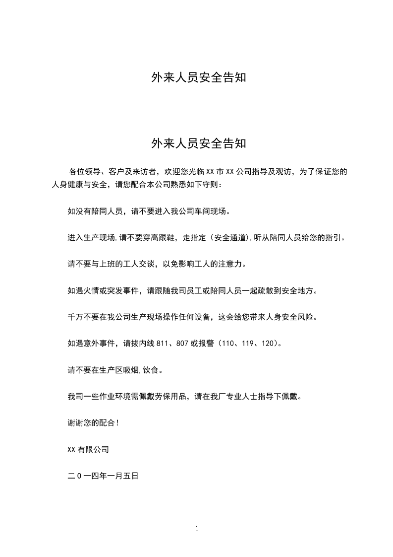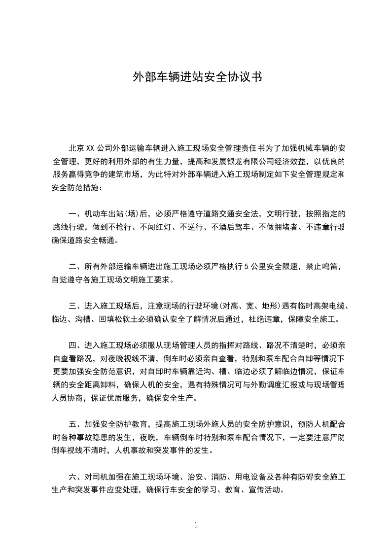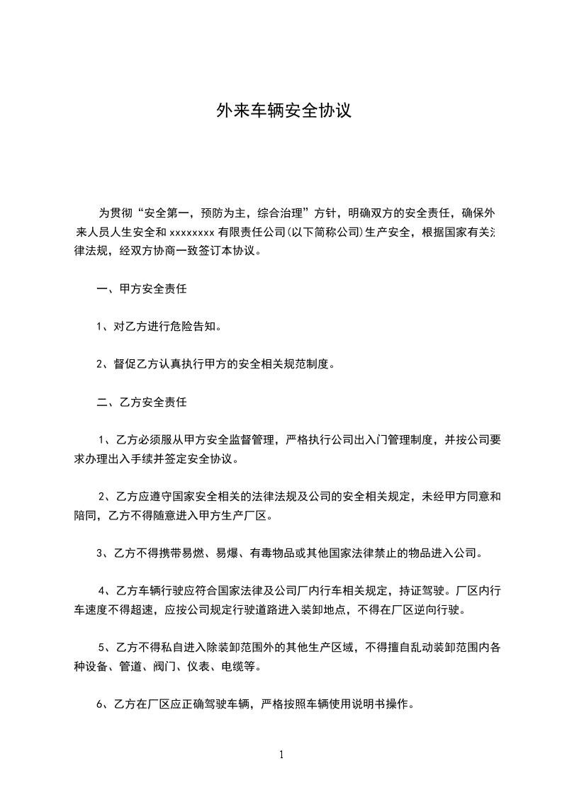 为贯彻“安全第一,预防为主,综合治理”方针,明确双方的安全责任,确保外来人员人生安全和xxxxxxxx有限责任公司(以下简称公司)生产安全,根据国家有关法律法规,经双方协商一致签订本协议。