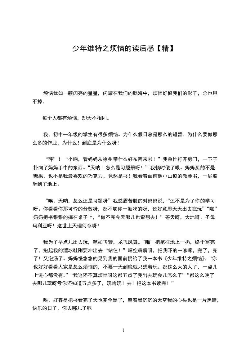 我为了早点儿出去玩,笔如飞转,龙飞凤舞。“啪”把笔往地上一扔,终于写完了,抱起我的溜冰鞋刚要冲出去“站住!”晴空霹雳呀,把我吓的一哆嗦,完了,完了!又泡汤了。妈妈慢悠悠的晃到我的面前扔给了我一本书《少年维特之烦恼》。“你也好好看看人家是怎么烦恼的,不要一天到晚就只想着玩。都这么大的人了,一点儿上进心都没有。”“我这还不算烦恼呀这都五点了我出去玩会儿怎么了”“都这么晚了去哪儿玩呀亏你还知道五点多了,玩啥玩!去!把这本书读完!”