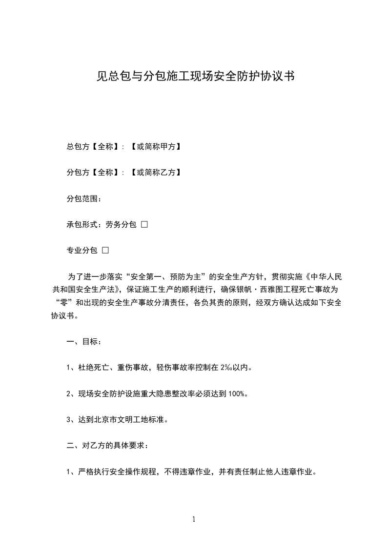 分包方【全称】: 【或简称乙方】