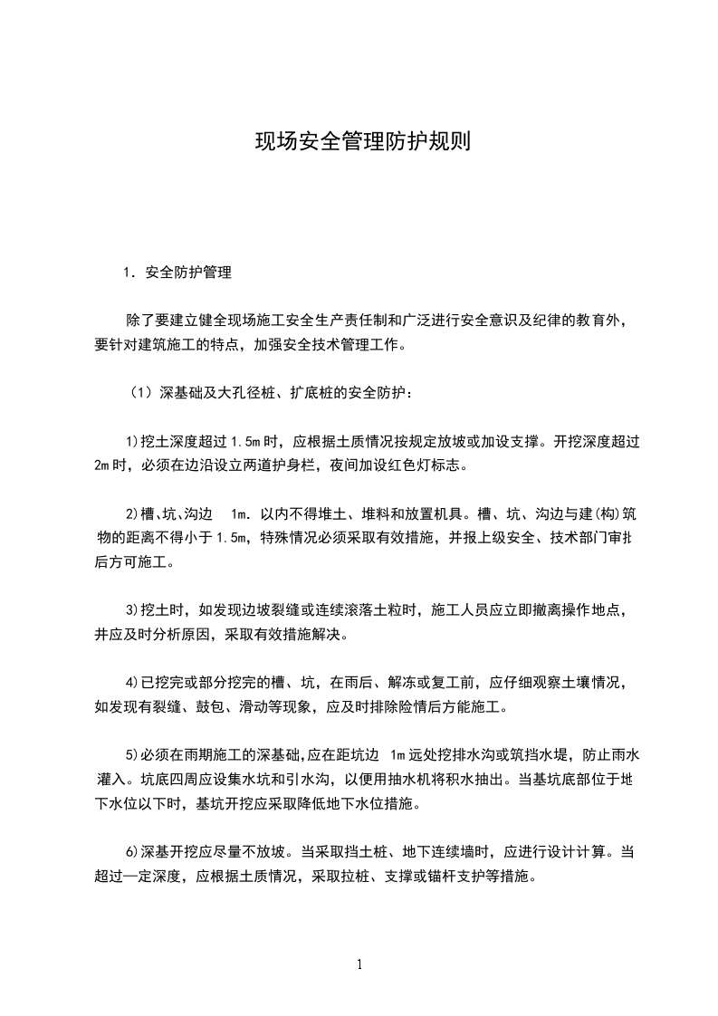 5、施工现场内的坑、槽及各种孔洞、出入口、高压线附近设置的防护围栏、盖板和安全标志等安全防护设施,未经工地负责人和安全管理人员批准,任何人都不得以任何理由随意挪动或拆改。