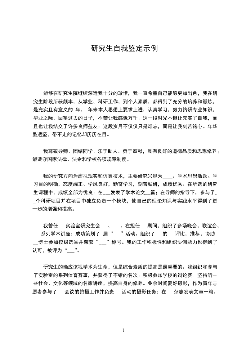 能够在研究生院继续深造我十分的珍惜,我一直希望自己能够更加出色,我在研究生阶段所获颇丰,从学业、科研工作,到个人素质,都得到了充分的培养和锻炼,是充实且有意义的_年。_年来本人思想上要求上进,认真学习,努力钻研专业知识,毕业之际,回望过去的日子,不禁让我感慨万千:这一段时光不但让充实了自我,而且也让我结交了许多良师益友;这段岁月不仅仅只是难忘,而是让我刻苦铭心。年华虽逝坚,带不走的记忆却历历在目。