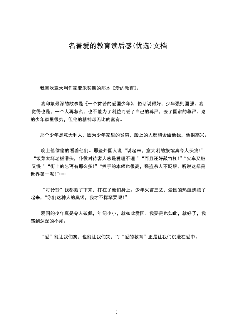 我喜欢意大利作家亚米契斯的那本《爱的教育》。