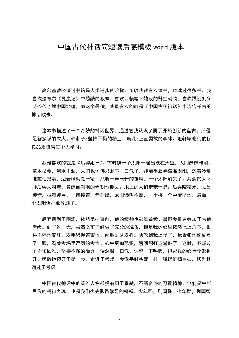 我最喜欢的就是《后羿射日》。古时候十个太阳一起出现在天空,人间酷热难耐,草木枯萎,河水干涸,人们也仿佛只剩下一口气了。神箭手后羿瞄准太阳,沉着冷静地拉弓搭箭,迎着风就是一箭,只听一声长长的怪叫,一个太阳消失了。其余的太阳冲后羿大叫着,炙热而刺眼的光朝他照去。地上的人们奄奄一息。后羿咬咬牙,抽出神箭,拉满神弓,一箭接着一箭射出,太阳惨叫不断,一个接一个中箭坠地。最后一个太阳也不敢放肆了。