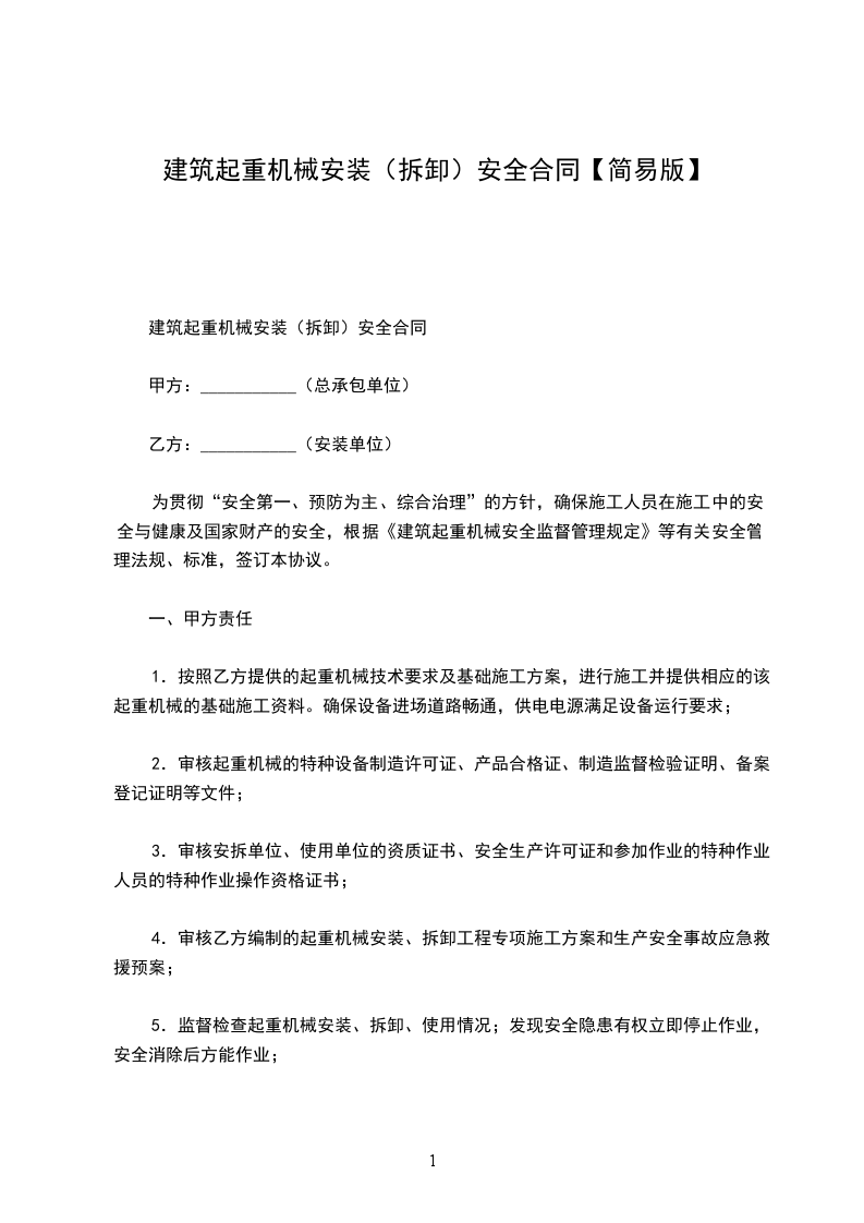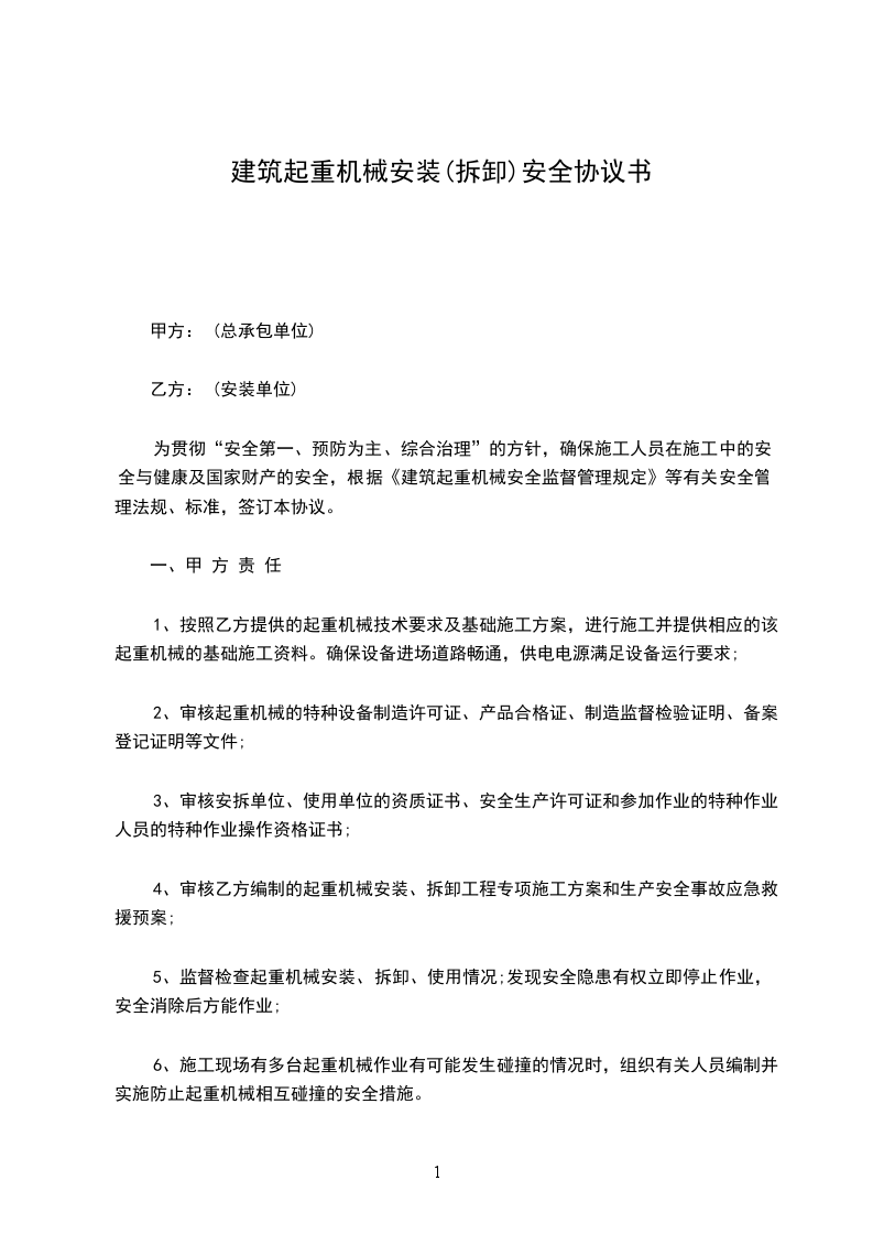 为贯彻“安全第一、预防为主、综合治理”的方针,确保施工人员在施工中的安全与健康及国家财产的安全,根据《建筑起重机械安全监督管理规定》等有关安全管理法规、标准,签订本协议。