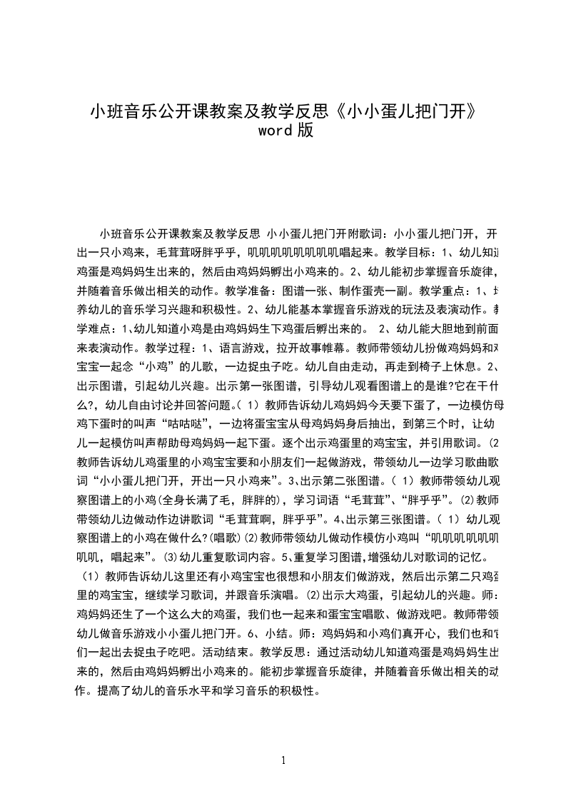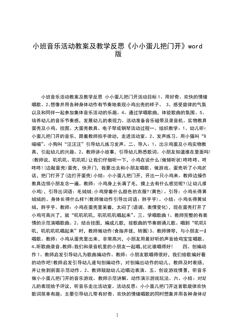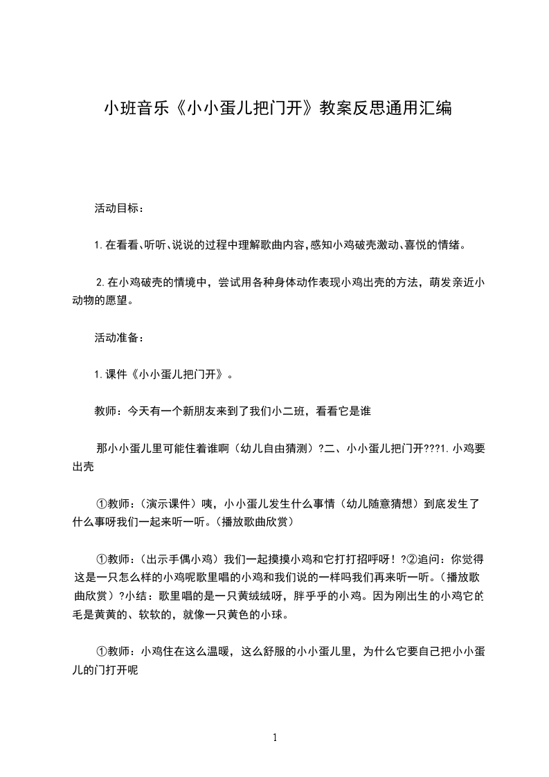 那小小蛋儿里可能住着谁啊(幼儿自由猜测)?二、小小蛋儿把门开???1.小鸡要出壳