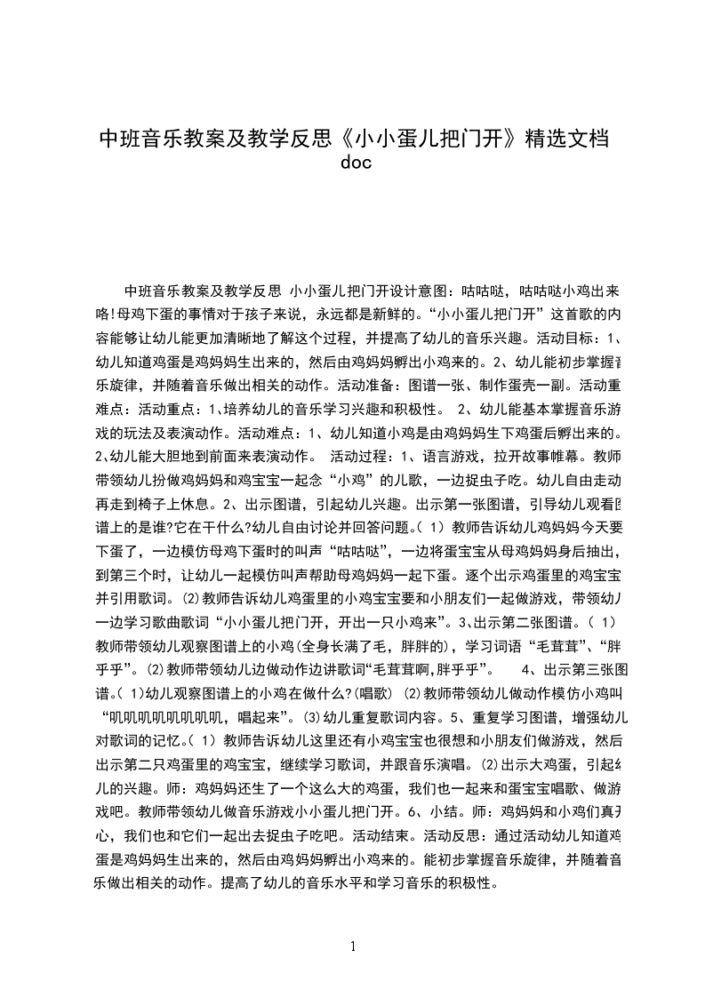 ②教师:小鸡宝宝会用了什么好办法破壳而出呢?小结:有的小鸡用小脑头和小屁股顶,有的小鸡用尖尖的小嘴啄,有的小鸡用脚踢,还有的小鸡用翅膀推,真是一群聪明又可爱的小鸡。?③教师:这一次我们都来做一只可爱的小鸡宝宝,听着音乐,用自己喜欢的办法把小小蛋儿的门打开吧