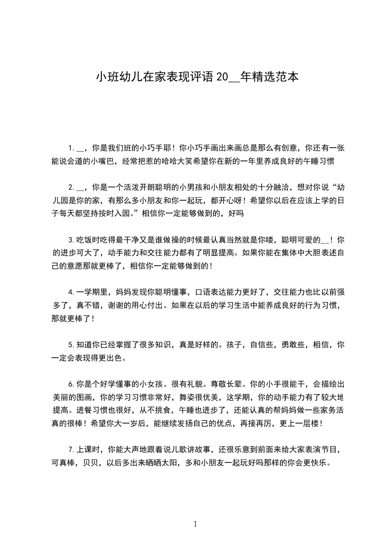 1.__,你是我们班的小巧手耶!你小巧手画出来画总是那么有创意,你还有一张能说会道的小嘴巴,经常把惹的哈哈大笑希望你在新的一年里养成良好的午睡习惯