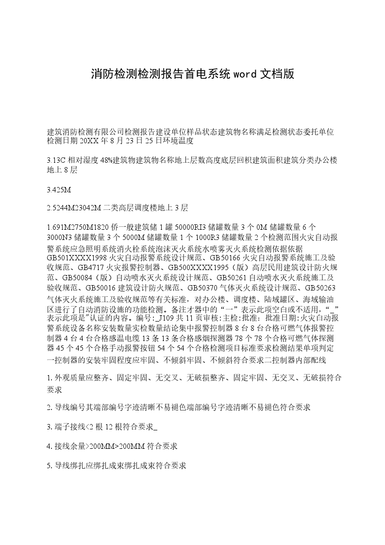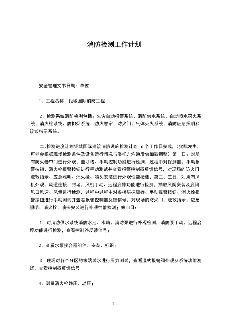 按照陕西省物价局陕价费调发[2001]85号《关于电气消防安全检测收费标准(试行)》的批复第二条以被检建筑面积贰元/平方米收取。被检总面积为: m2;检测费总计_____元,大写:元。