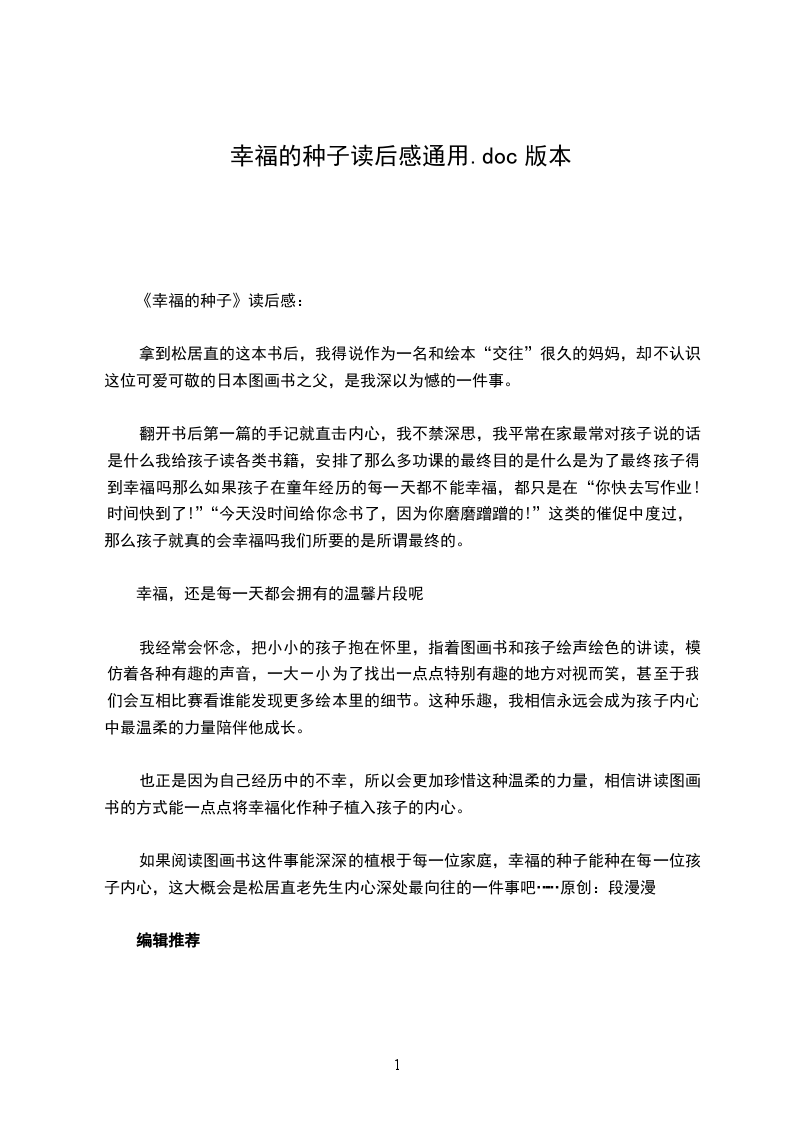 《幸福的种子》读后感: