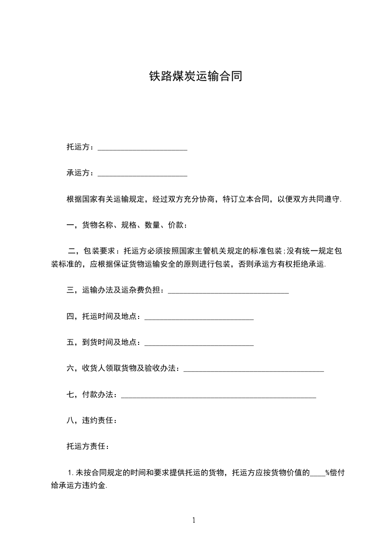 托运方:__________________ 承运方:_______________________