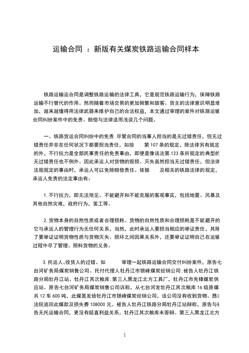 根据国家有关运输规定,经过双方充分协商,特订立本合同,以便双方共同遵守.