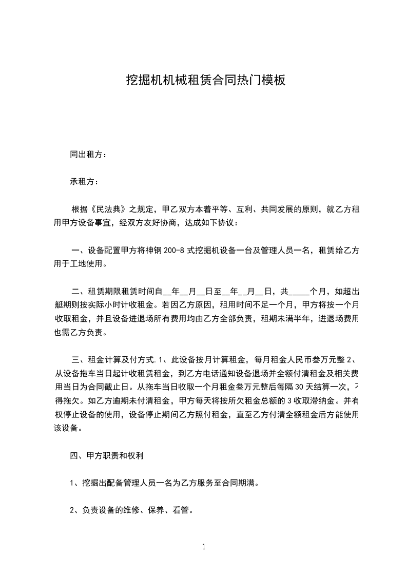 根据《中华人民共和国民法典》的规定,为明确出租方与承租方的权利和义务,遵循平等、自愿、公平和诚信的原则,双方就以下机械租赁事宜协商一致,订立本合同。第一条设备名称、型号、规格及数量