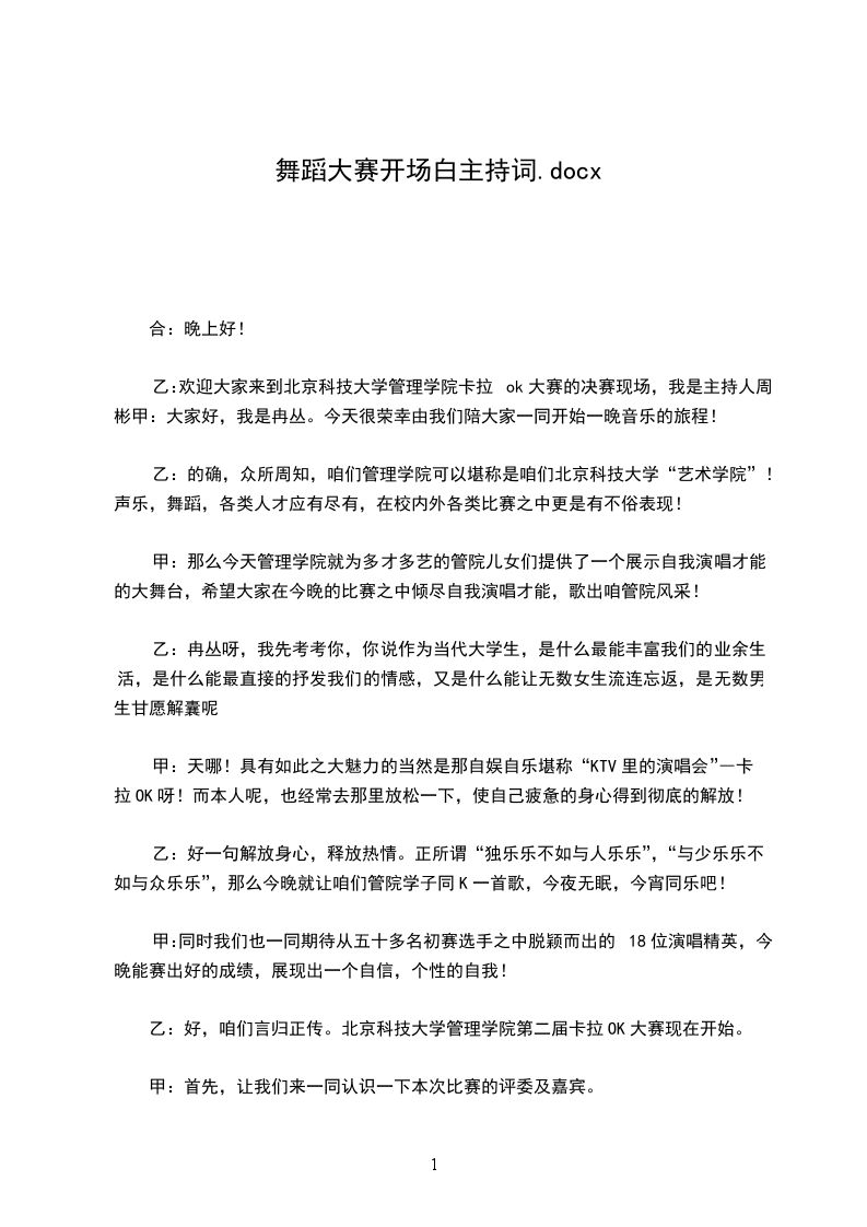乙:欢迎大家来到北京科技大学管理学院卡拉ok大赛的决赛现场,我是主持人周彬甲:大家好,我是冉丛。今天很荣幸由我们陪大家一同开始一晚音乐的旅程!