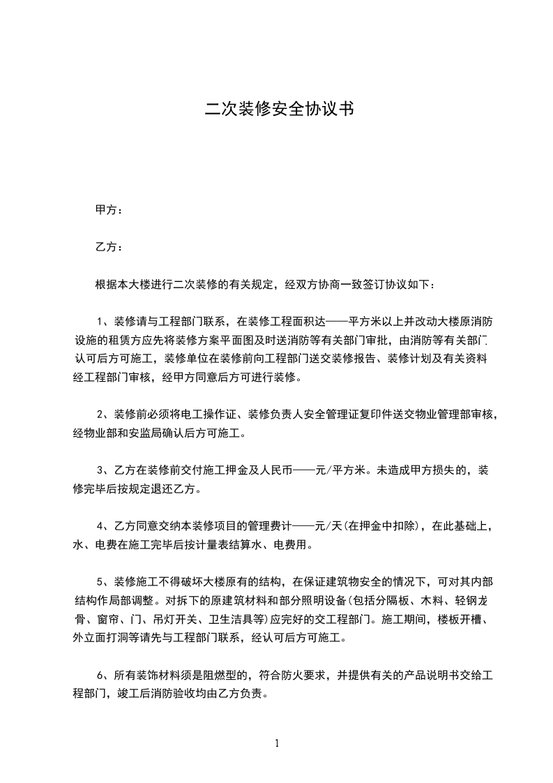 根据本大楼进行二次装修的有关规定,经双方协商一致签订协议如下: